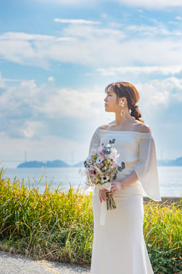 岡山フォトウェディングクリエイターチームRange(レンジ)プロデュース、大三島ウェディングフォトツアー。ヘアメイクもドレスも生花ブーケもセットになったプラン。ドレスはこだわりのインポートドレスやビンテージドレス。憧れのボヘミアンスタイルも叶います!島のロケーションをたっぷり楽しめるフォトツアー。お2人の為だけのツアーコースをプロデュースいたします。